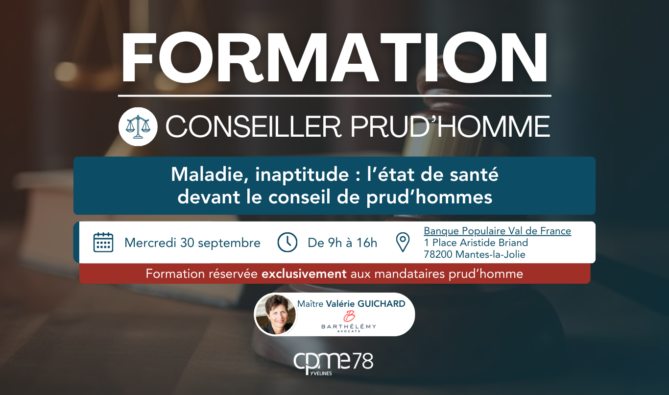Cette session s’inscrit dans un programme de 8 formations CPH organisées sur l’année par la CPME78, et animées par le Cabinet Barthélémy Avocats.