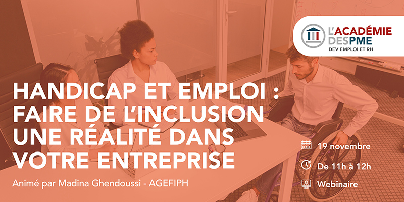 Salariés, dirigeants d’entreprise, indépendant, demandeur d’emploi ou retraité, une personne sur 2 connaîtra une situation de handicap au cours de sa vie. Et alors que presque 20% de la population française est en situation de handicap (dont 80% de handicaps invisibles), une méconnaissance du sujet persiste. Conséquence : incompréhension, barrières dans les échanges, sites Internet conçus sans penser à l’accessibilité… L’inclusion des personnes en situation de handicap en entreprise est aujourd’hui une priorité, et il appartient dès aujourd’hui à chacun d’acquérir les connaissances suffisantes pour que cette démarche soit plus efficiente.