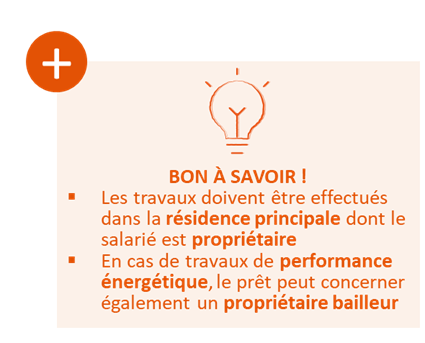 Le prêt travaux d’amélioration offre la possibilité d’entreprendre une vaste gamme de travaux de rénovation de la résidence principale de votre salarié. Il peut couvrir des travaux de décoration, de mise aux normes, d’amélioration de l’habitat, de sécurité des biens et des personnes, et bien plus encore. De surcroît, ce dispositif prend en charge les dépenses pour des diagnostics thermiques, acoustiques, ou la suppression de graffitis, offrant plusieurs options pour améliorer un espace de vie, comme par exemple améliorer ses conditions de télétravail, pour être plus performant, même loin du bureau.